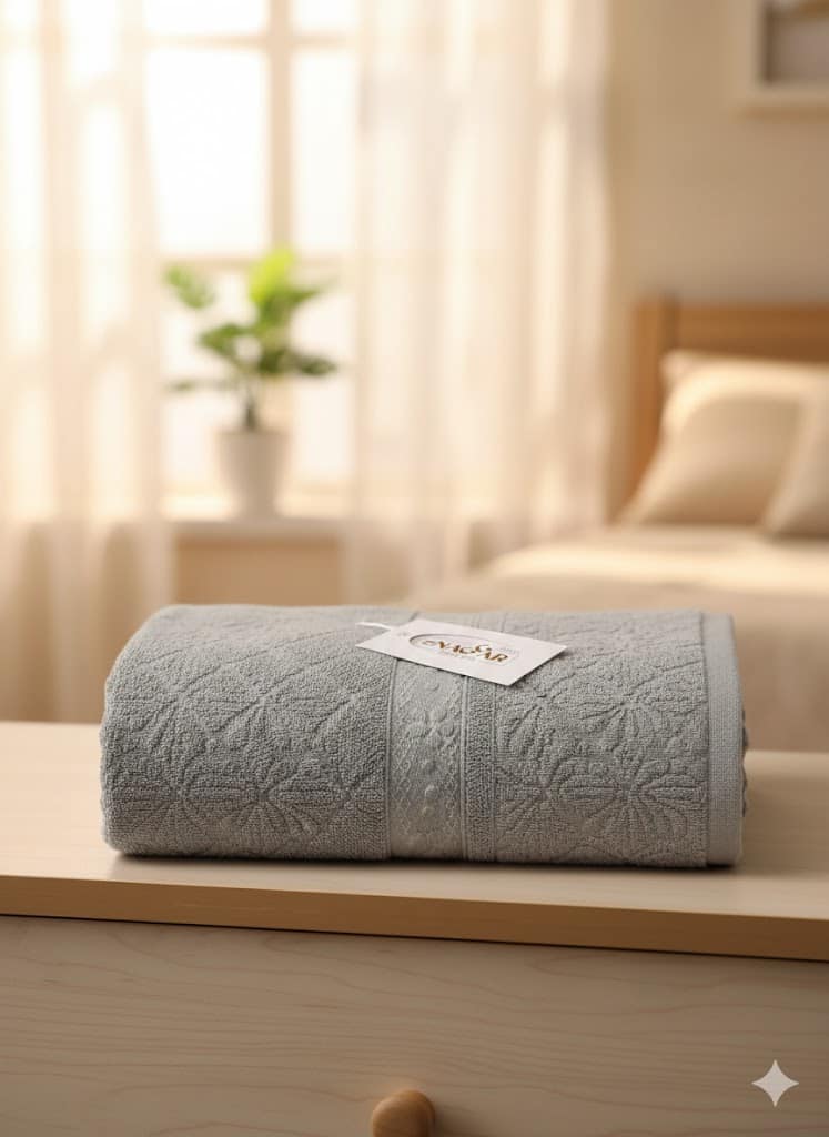 الخامة: مصنوع من القطن البيور 100%، المعروف بأليافه الطويلة التي تضمن نعومة استثنائية وقدرة عالية على امتصاص الماء والسوائل