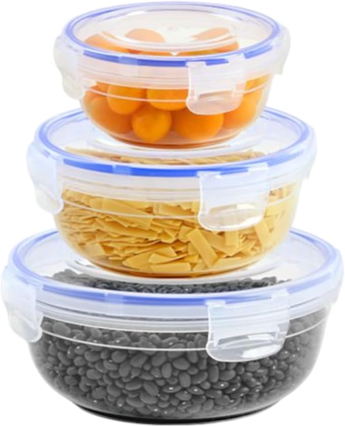 .إحكام الغلق: تأتي بأغطية مزودة بكليبسات جانبية وجوان (حلقة) سيليكون لضمان إغلاق محكم 100% يمنع تسرب السوائل أو الروائح أو دخول الهواء، مما يحافظ على طزاجة الطعام لفترة أطول