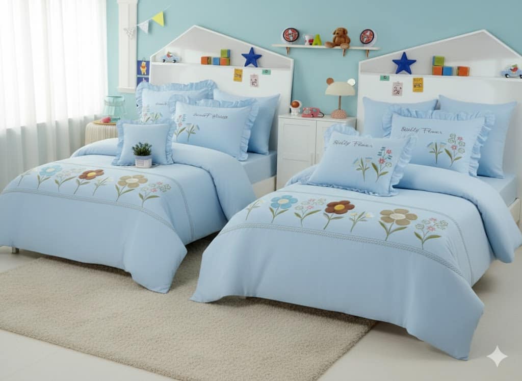 التصميم: يتميز بتطريزات زهور رقيقة وألوان زاهية تضيف حيوية وسعادة لغرفة الأطفال