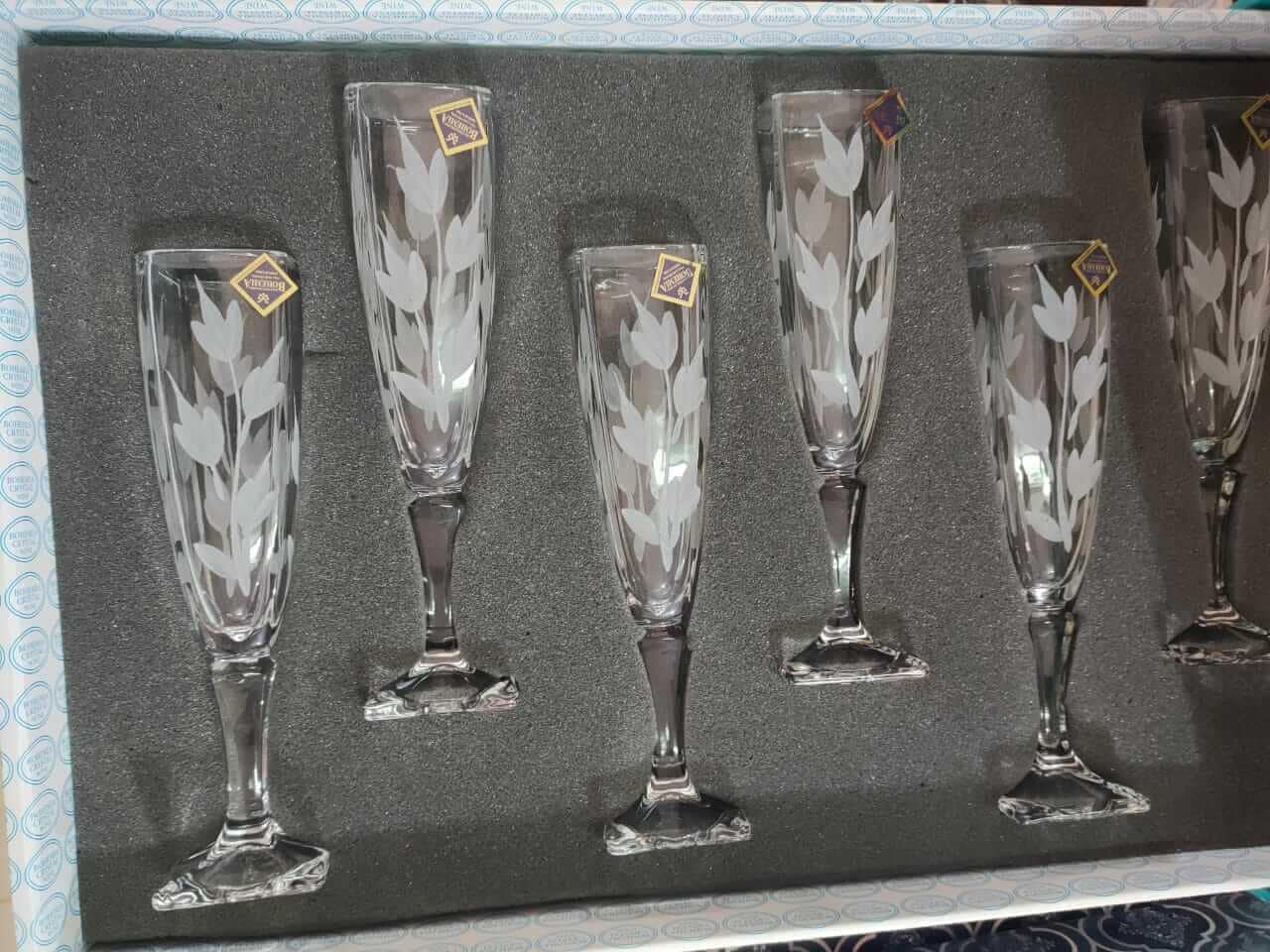 تميزي بلمسة تاريخية وراقية: طقم كريستال نادر بنقشة زهرة السوسن (الآيرس) الشهيرة، يضفي الفخامة على أي مناسبة