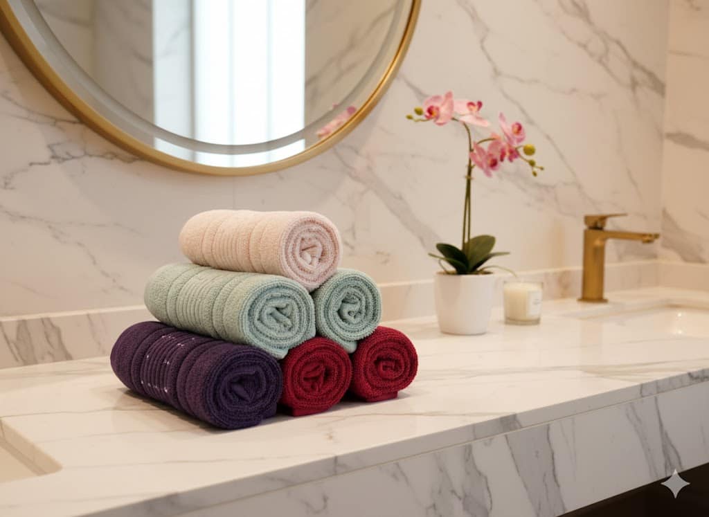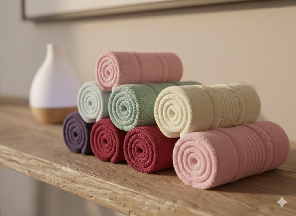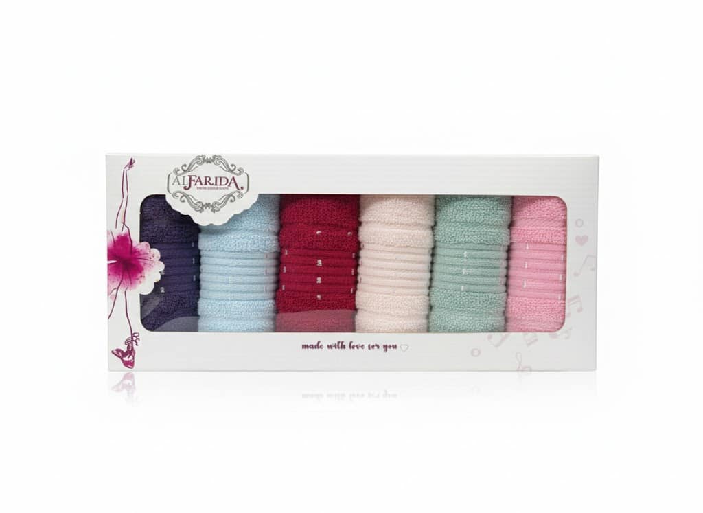المقاس: تتراوح المقاسات الشائعة لهذه الفوط بين 30×30 سم ، مما يجعلها مثالية للاستخدام في الحمام أو كفوط للضيوف