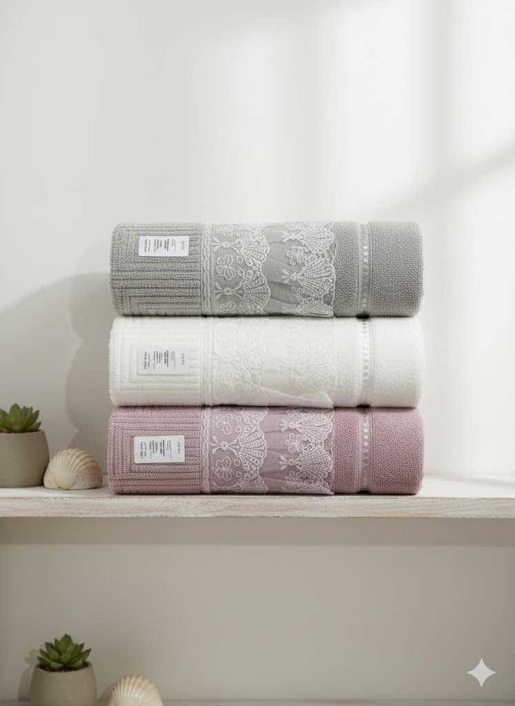 تصميم أنيق: تتميز الفوط بتطريز الجوبير الراقي وحواف مخيطة باحترافية، مما يضيف لمسة من الفخامة والشياكة لديكور حمامك