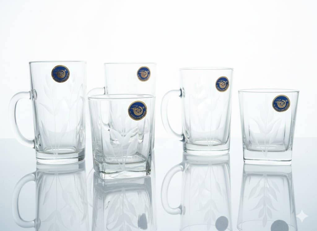 مجموعة متكاملة: 20 قطعة تلبي كافة احتياجاتك، من أكواب المياه الكبيرة إلى كاسات العصير الصغيرة.