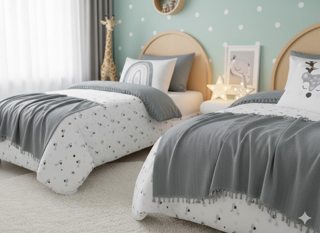 طقم كامل وموفر: 8 قطع تغطي سريرين بالكامل، لتنسيق غرفة أطفالك بكل سهولة وبأفضل قيمة