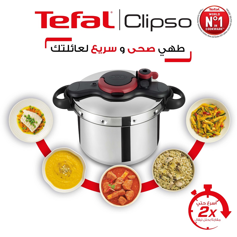 طبخ صحي وسريع مع كليبسو بلس. قدر ضغط من الفولاذ المقاوم للصدأ مزود بخمسة عوامل أمان لضمان أقصى درجات الأمان، وغطاء ذكي صنع في فرنسا. يُطهى أسرع بمرتين باستخدام الضغط العالي، مما يوفر لك الوقت. يحتفظ بفيتامين سي بنسبة تصل إلى 80% أكثر من الطبخ في قدر عادي. يفتح الغطاء الذكي بسهولة بيد واحدة، ويحتوي على وحدة تحكم في إطلاق البخار. يأتي كليبسو بلس مع سلة بخار للحفاظ على نكهة المكونات وفيتاميناتها بشكل أفضل، وبرنامجين للطهي لوجبات متوازنة تمامًا، وكتاب وصفات بأوقات طهي مناسبة. مصنوع من الفولاذ المقاوم للصدأ الأوروبي عالي الجودة 18/10. متوافق مع جميع أنواع المواقد، بما في ذلك مواقد الحث. آمن للاستخدام في غسالة الأطباق. متوفر بثلاثة أحجام مختلفة: 8 لترات، 10 لترات، و11.8 لتر.