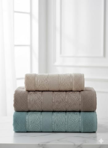 .اكتشفي الفخامة الحقيقية والراحة التي لا مثيل لها مع طقم الفوط من البسيوني، الاسم العريق في عالم المنسوجات المصرية
