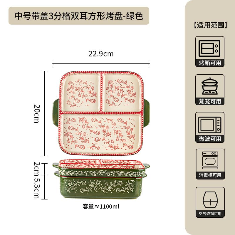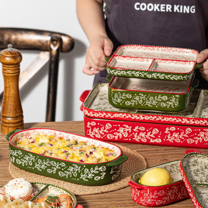 أناقة ريفية على طاولتك: طقم طواجن بورسلين حراري بتصميم “فلوري” أخضر ساحر