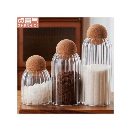 برطمانات زجاجية شفافة بغطاء خشبي لطيف، تضيف لمسة جمالية لأي مطبخ أو غرفة معيشة.