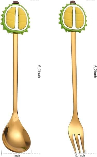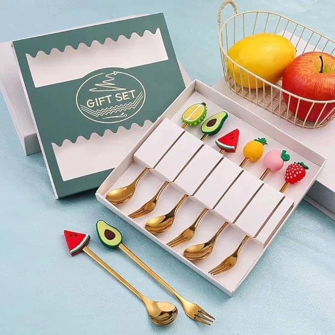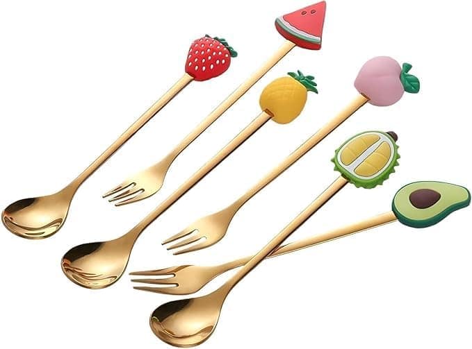 المحتويات: طقم مكون من 6 قطع (ملاعق أو شوك أو مزيج منهما) بأشكال فواكه متنوعة