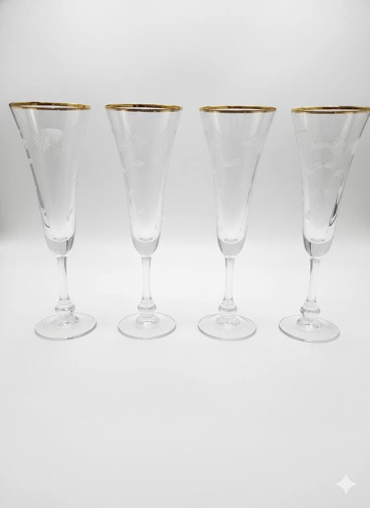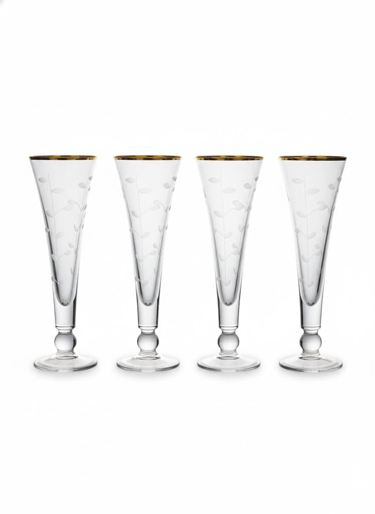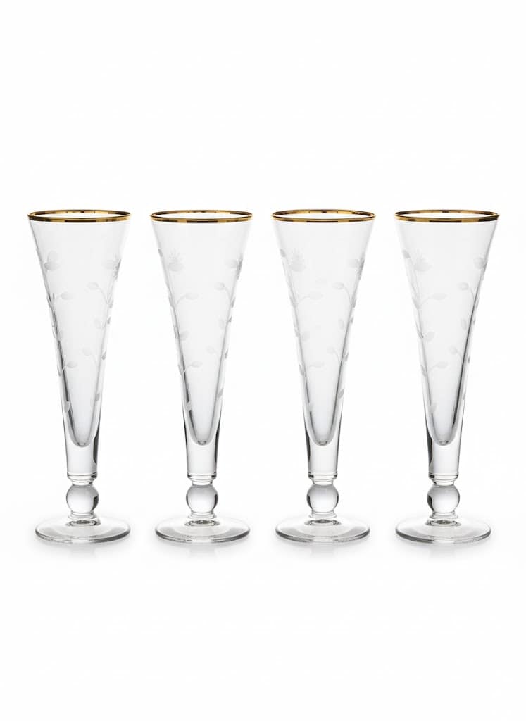 اغمرِ مناسباتك بلمسة من الذهب الحقيقي والفخامة المطلقة. كؤوس مصممة بعناية فائقة، يزينها نقش نباتي ناعم وحافة ذهبية متلألئة، لتحول كل رشفة إلى تجربة ملكية