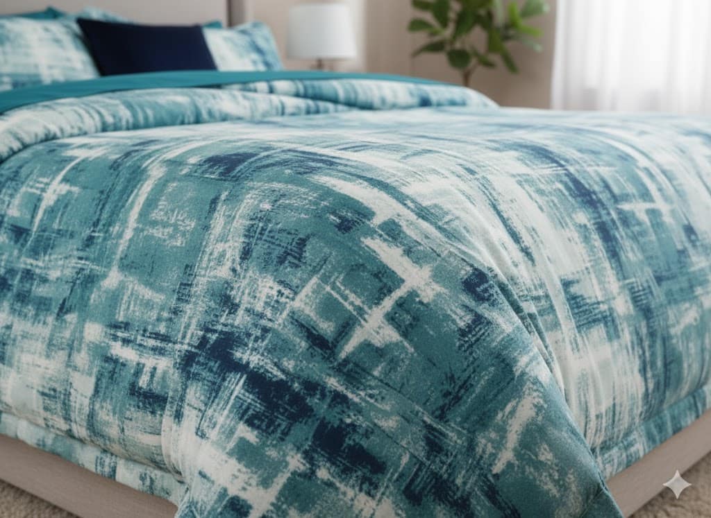 التصميم: يتميز بنمط تجريدي أو مائي جذاب وطباعة عالية الجودة تضفي لمسة فنية مميزة لديكور غرفتك.