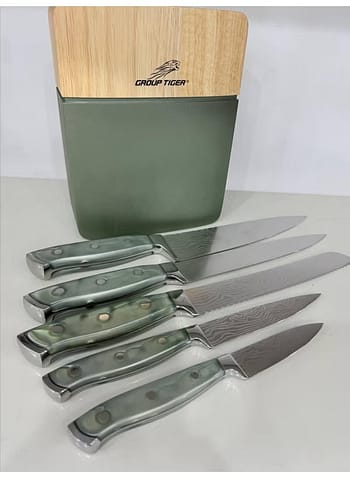 طقم سكاكين استانلس يد اكريلك علي اورمة خشب مينت 5 قطع من GROUP TIGER