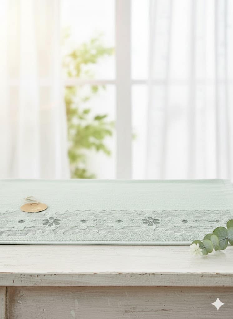 التصميم: يتميز بنسيج جاكار منقوش بأشكال الزهور الأنيقة، مع تفاصيل دقيقة تضيف طابعاً راقياً (قد يحتوي على دانتيل أو شراشيب حسب الموديل الدقيق)