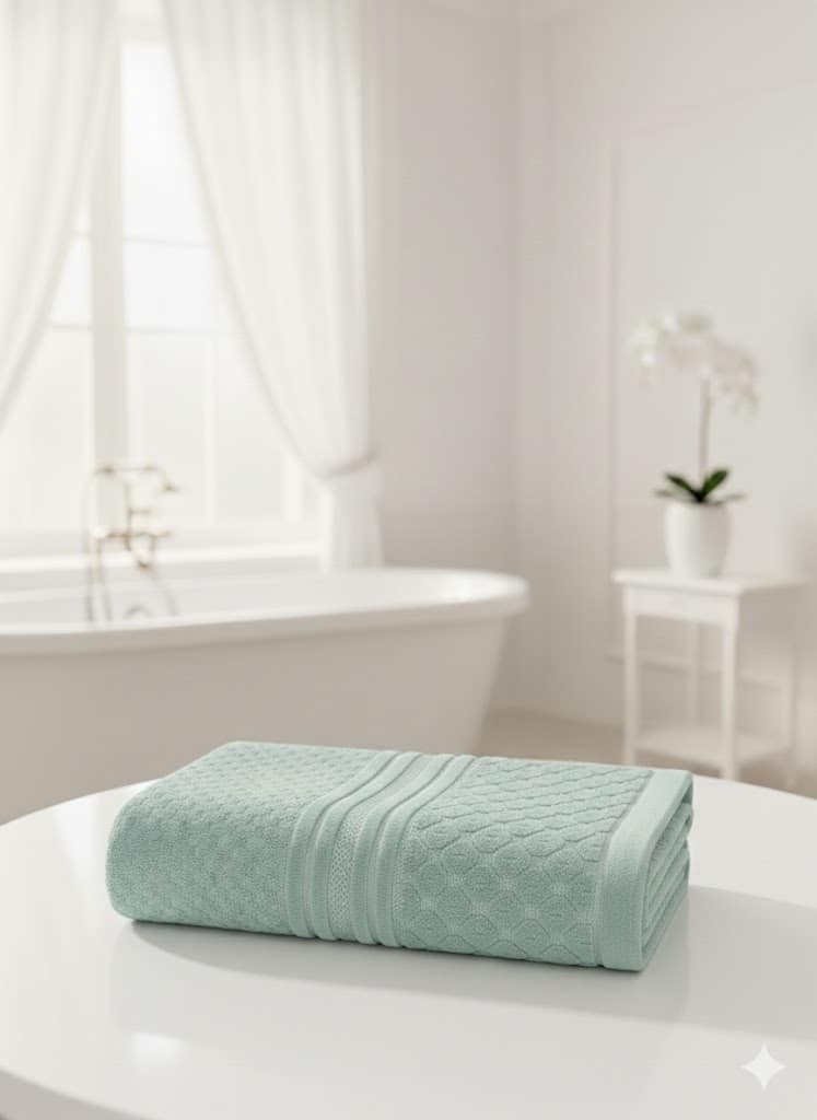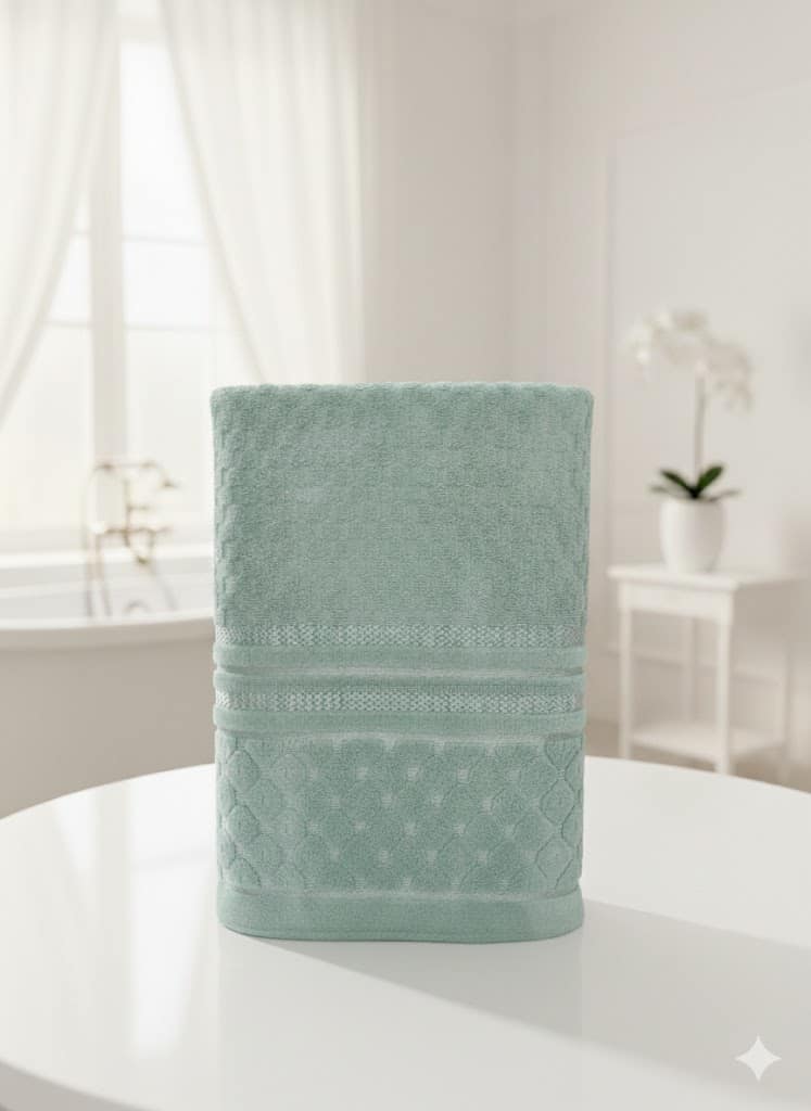 الخامة: مصنوع من القطن 100%، مما يضمن امتصاصاً فائقاً للماء وملمساً ناعماً على البشرة