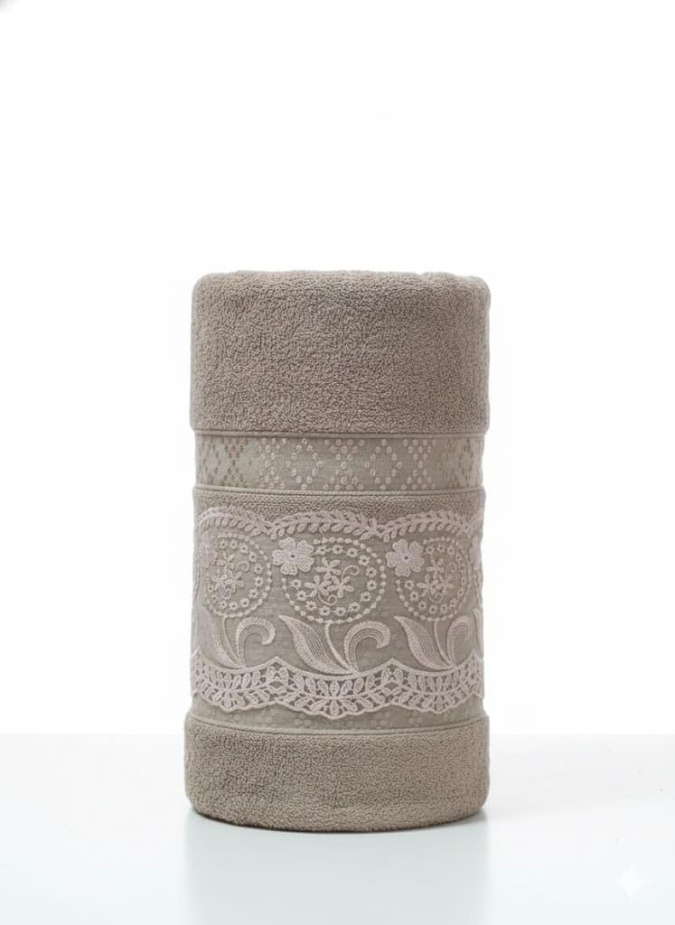التصميم: يتميز بتطريز جوبير (دانتيل) أنيق وفاخر على الأطراف، مما يمنحه شكلاً جذاباً ومميزاً