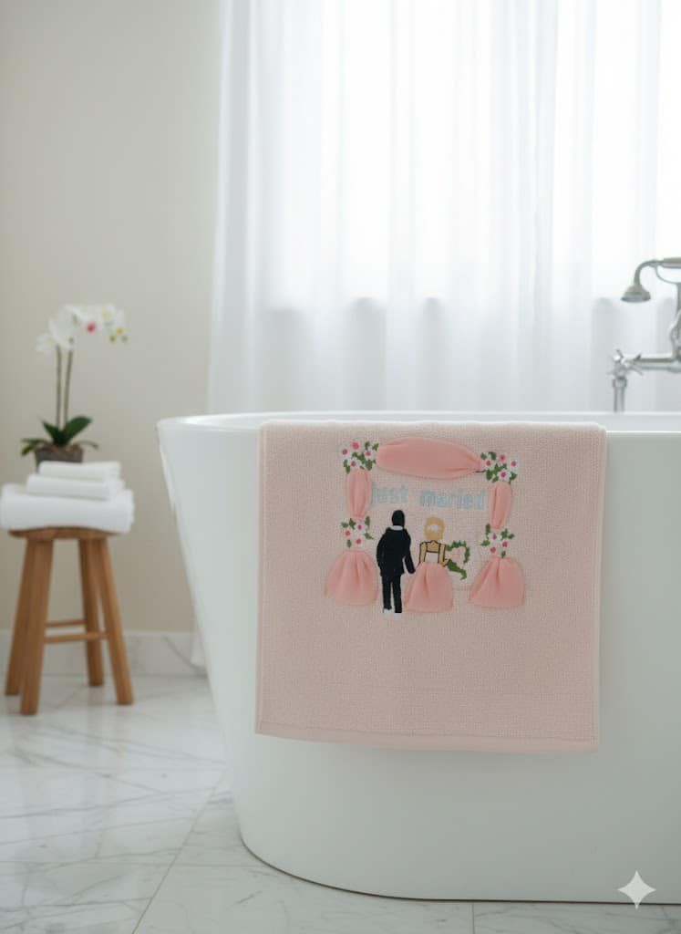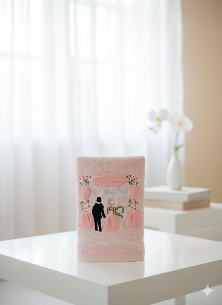 “Just married” هذا المنتج ليس مجرد بشكير، بل هو تذكار جميل ومميز مصمم خصيصاً ليوم زفافك، ويجمع بين النعومة الفائقة والتصميم الرومانسي بعبارة