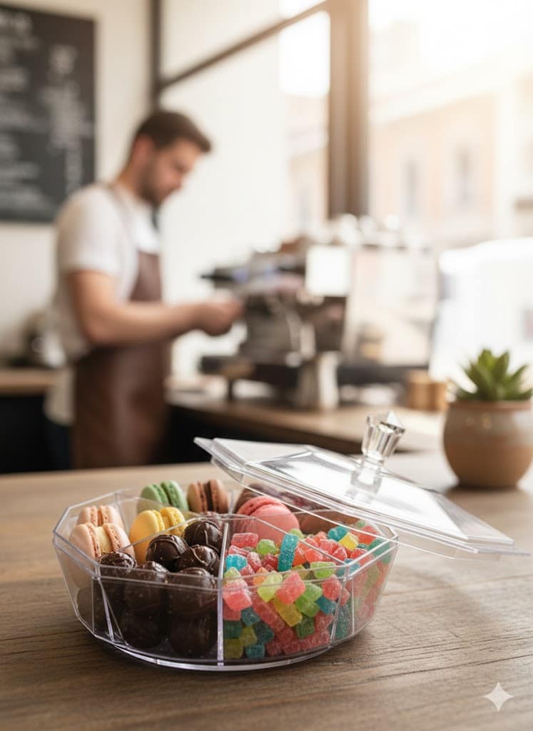 غطاء محكم وأنيق: تأتي بغطاء هندسي جذاب يحافظ على طعم وجودة (البونبوني، الشوكولاتة، المكسرات، أو التمور) لفترة أطول