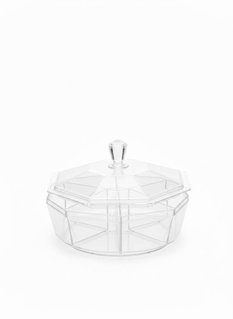تصميم هندسي ملكي: تصميم مستوحى من قطع الألماس النادرة، يعكس الضوء ويضفي بريقاً كريستالياً خلاباً في كل زاوية