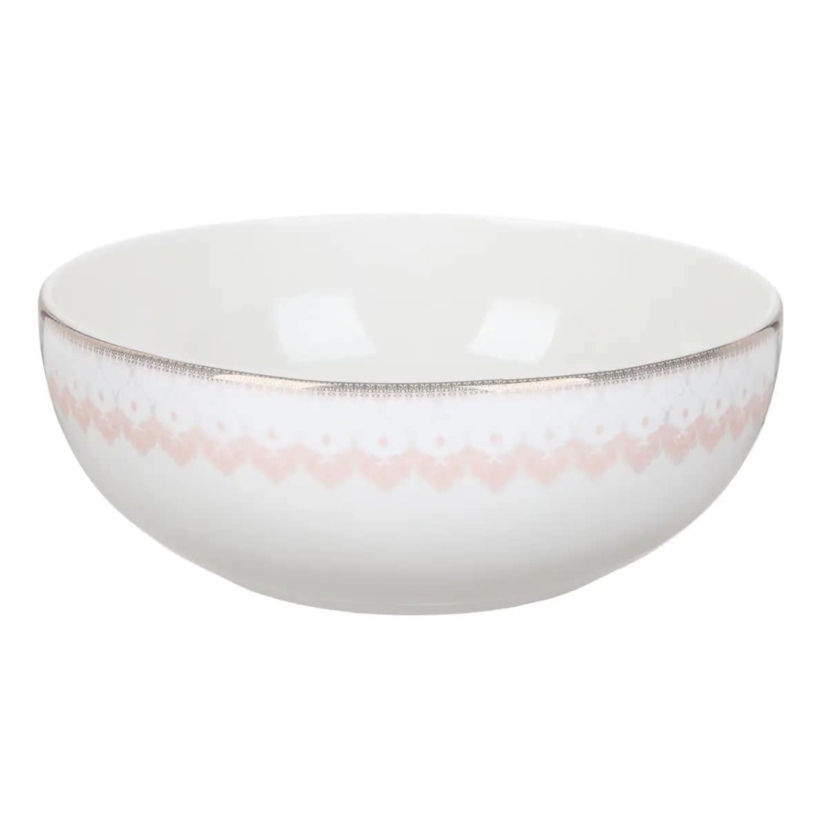 تصميم ساحر: يتميز الطقم بنقشات وردية رقيقة على خلفية بيضاء أنيقة، مما يضفي طابعاً عصرياً يلفت الأنظار ويعزز جمال مائدتك
