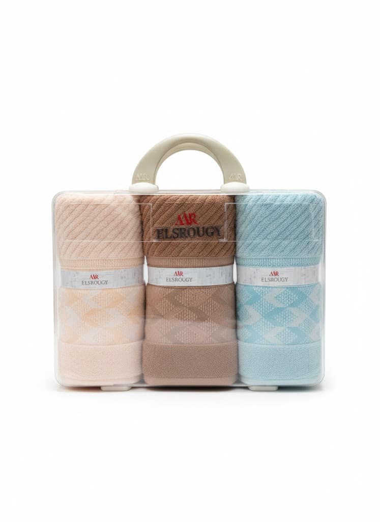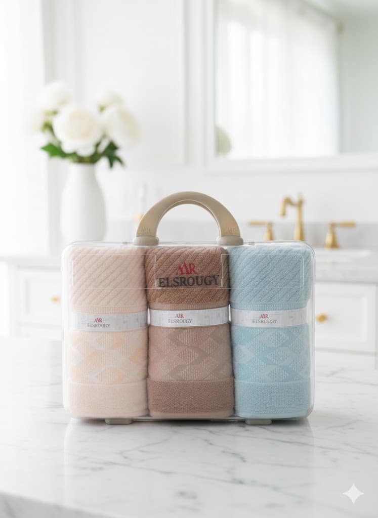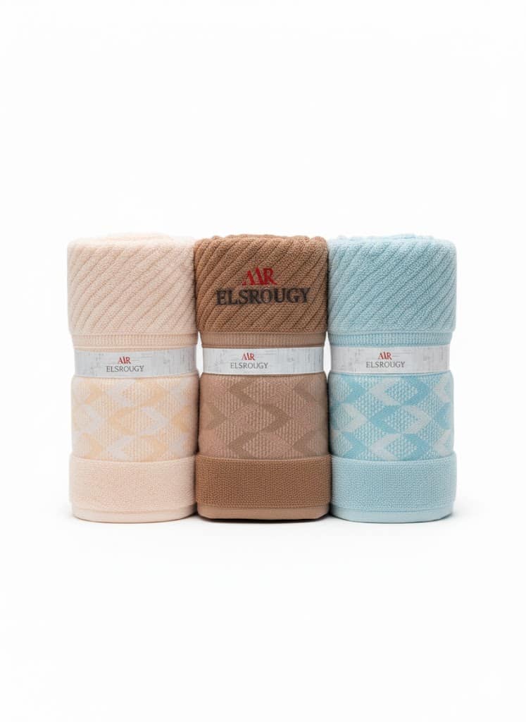 تصميم أنيق ومتنوع: يتميز بتصميمات الجاكار الأنيقة والألوان الهادئة التي تناسب كل الأذواق، مما يضيف لمسة جمالية لحمامك