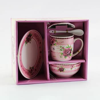 المحتويات: يتوفر  يتضمن 6 فناجين و6 صحون منسقة. تتوفر أيضًا قطع إضافية مثل إبريق حليب بنفس التصميم