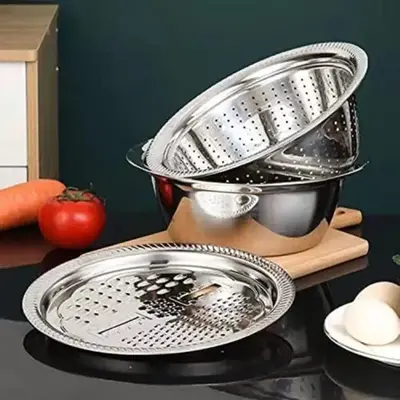 طقم 3 قطع عملي ومتين – مصفاة + مبشرة + وعاء لغسل الخضروات