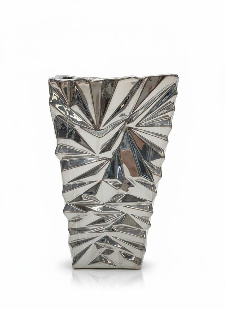 اللون واللمسة النهائية: في الصورة، الفازة ذات لون فضي لامع (كروم)،