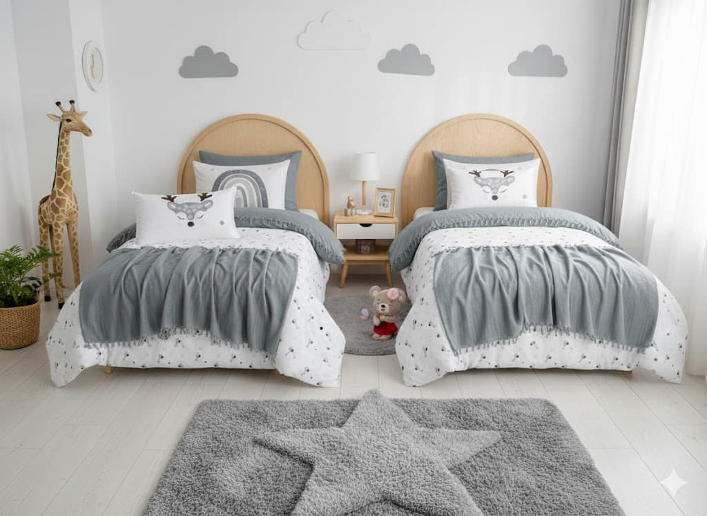 طقم كامل وموفر: 8 قطع تغطي سريرين بالكامل، لتنسيق غرفة أطفالك بكل سهولة وبأفضل قيمة