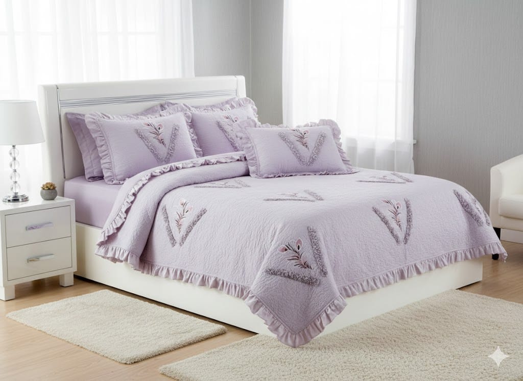 اللون: لون بنفسجي فاتح (لافندر) أو رمادي هادئ، يمنح شعوراً بالاسترخاء