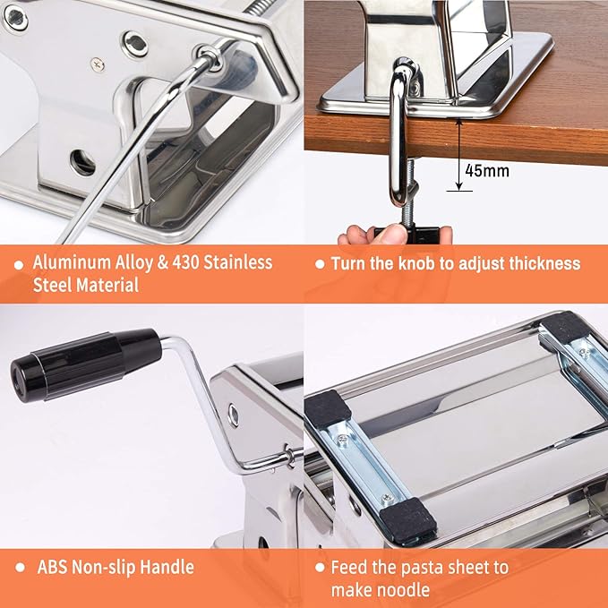 .ثبات وكفاءة: مزودة بملزمة تثبيت قوية لتثبيتها على طرف الطاولة أو سطح العمل، مما يضمن الثبات الكامل أثناء العجن والتقطيع