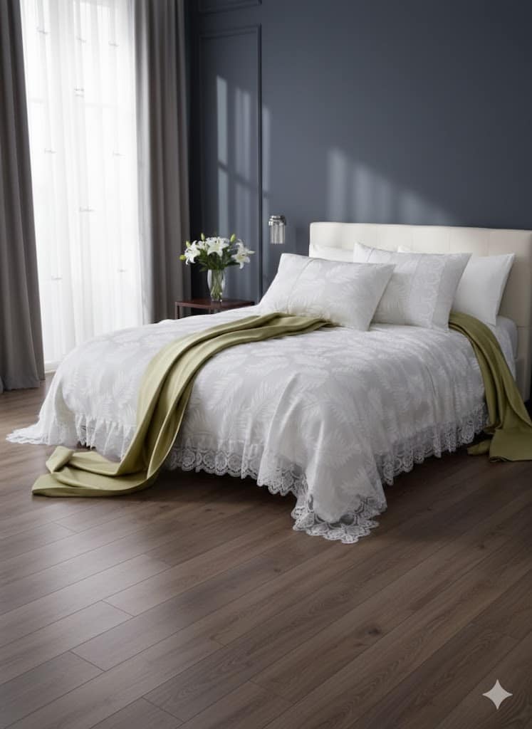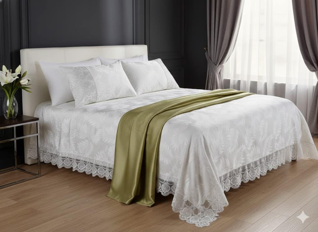 التصميم: طقم سرير فرنسي طبيعي فاخر مع دانتيل